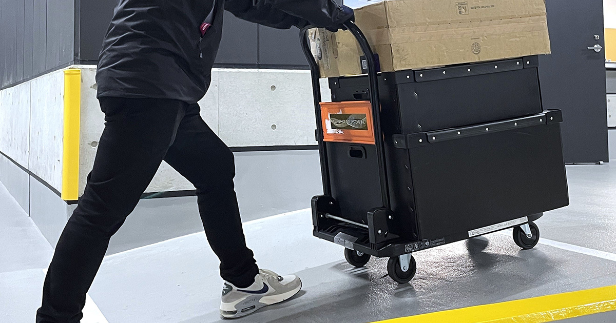 台車やキャスター付きのケースを使うと、身体への負担をかなり軽減できます。ただ、便利だからといって積み上げすぎると、荷崩れなどの事故に繋がりかねません。